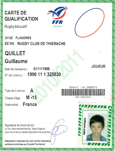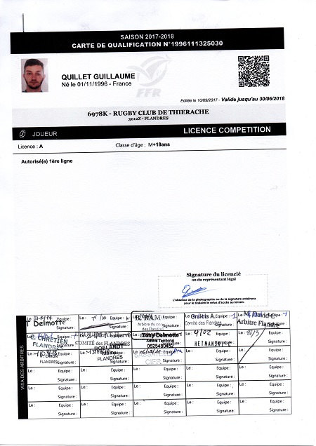 Nom:   Quillet Prénom:   Guillaume Date de naissance:   Vendredi 01 novembre 1996 Lieu de naissance:   Hirson (France) Poste:   Centre, Demi d'ouverture |