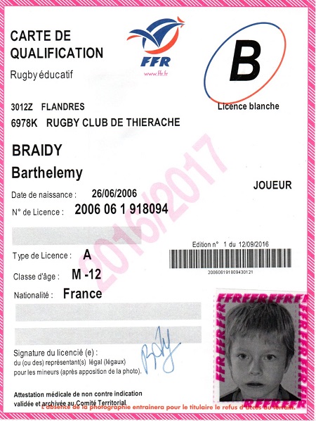 Nom:   Braidy Prénom:   Barthelemy Date de naissance:   Lundi 26 juin 2006 Lieu de naissance:   Reims (France) |