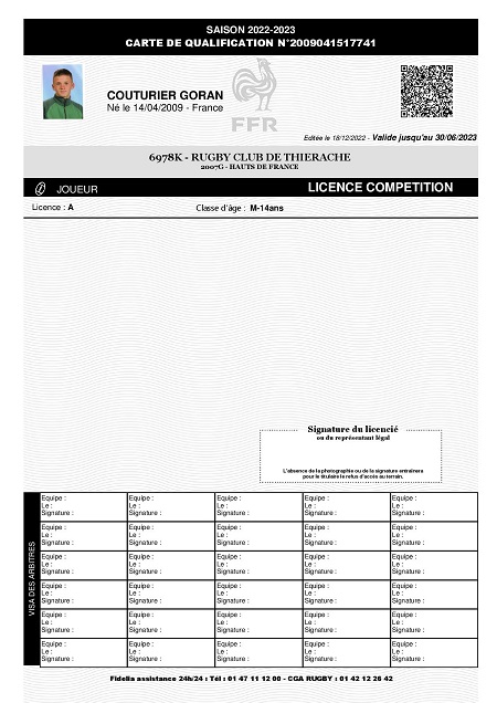 Lien de parenté avec une autre personne licenciée au club: