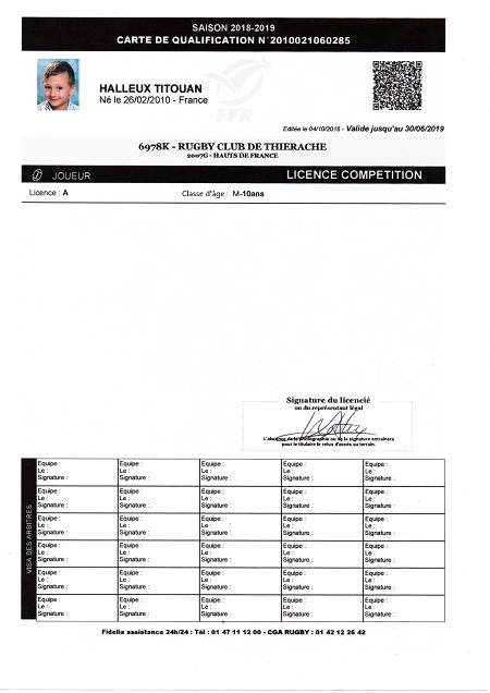Lien de parenté avec une autre personne licenciée au club: