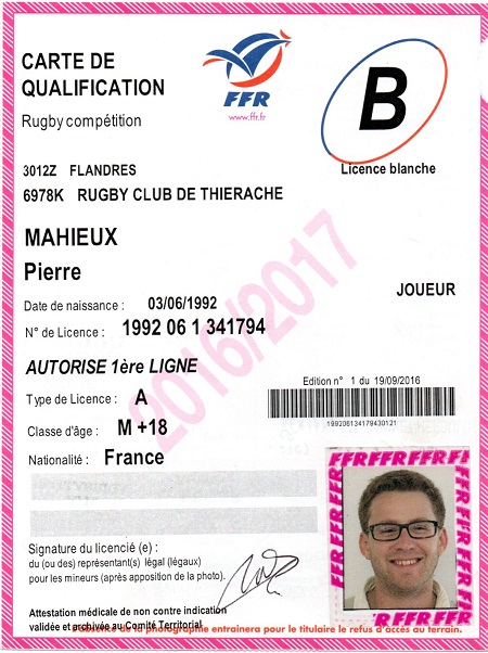 Nom:   Mahieux Prénom:   Pierre Date de naissance:   Mercredi 03 juin 1992 |