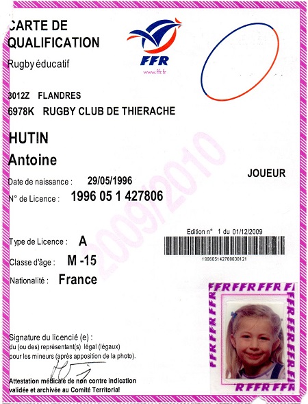 Nom:   Hutin Prénom:   Antoine Date de naissance:   Mercredi 29 mai 1996 |