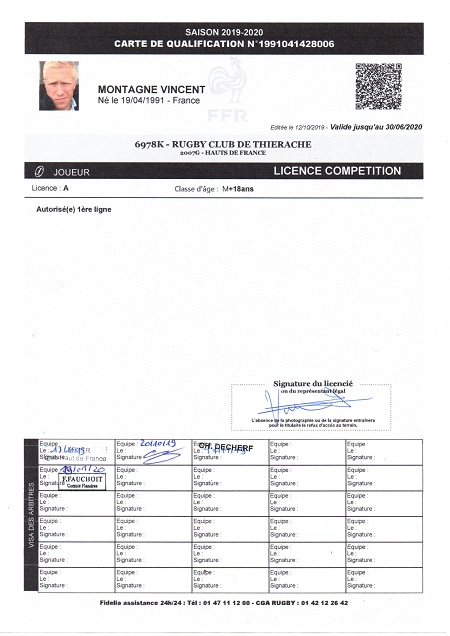Nom:   Montagne Prénom:   Vincent Date de naissance:   Vendredi 19 avril 1991 |