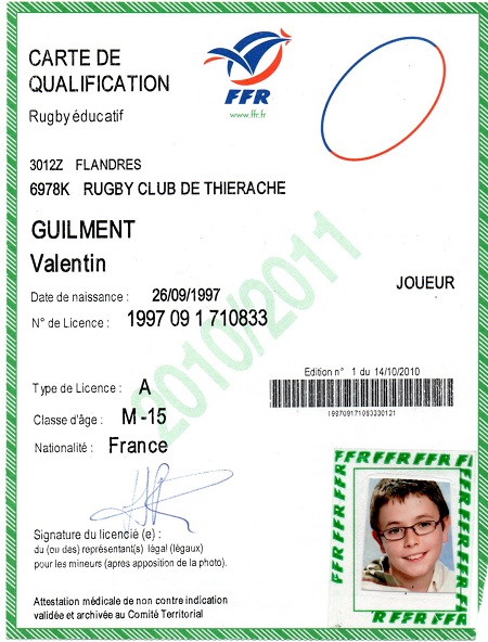 Nom:   Guilment Prénom:   Valentin Date de naissance:   Vendredi 26 septembre 1997 |