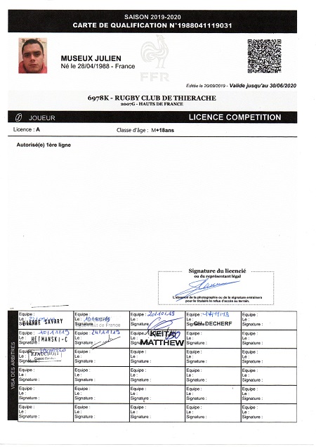 Nom:   Museux Prénom:   Julien Date de naissance:   Dimanche 24 avril 1988 Lieu de naissance:   St Maur des fossés (France) Poste:   Talonneur |