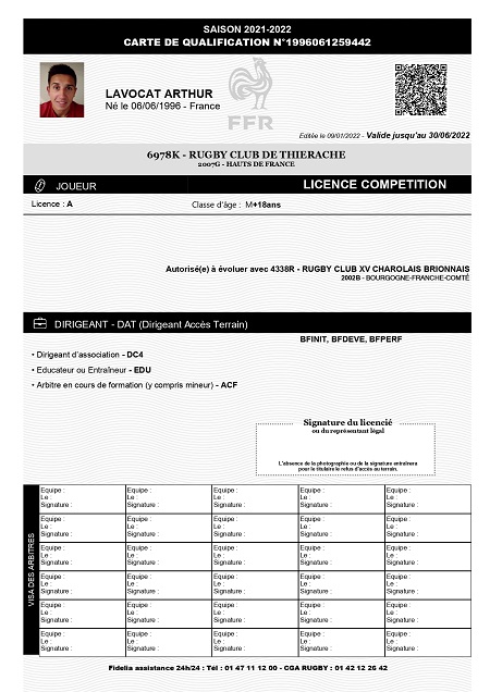 Nom:   Lavocat Prénom:   Arthur Date de naissance:   Jeudi 06 juin 1996 Lieu de naissance:   Paray le monial (France) Poste:   Demi d'ouverture |