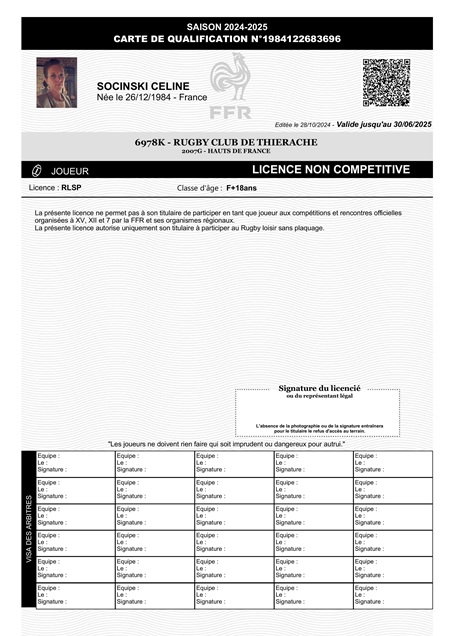 Lien de parenté avec une autre personne licenciée au club: