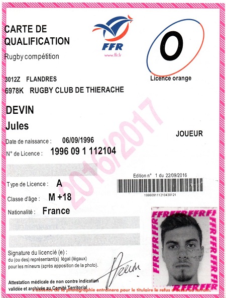Nom:   Devin Prénom:   Jules Date de naissance:   Vendredi 06 septembre 1996 Lieu de naissance:   Hirson (France) Poste:   Ailier |
