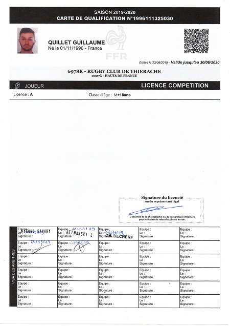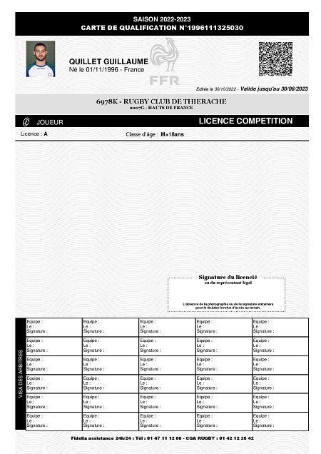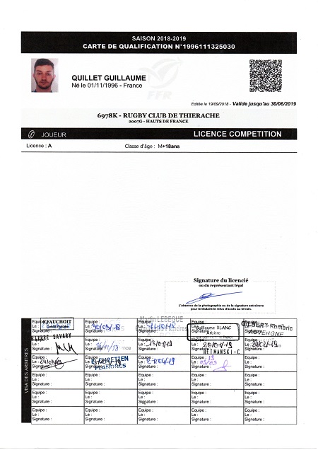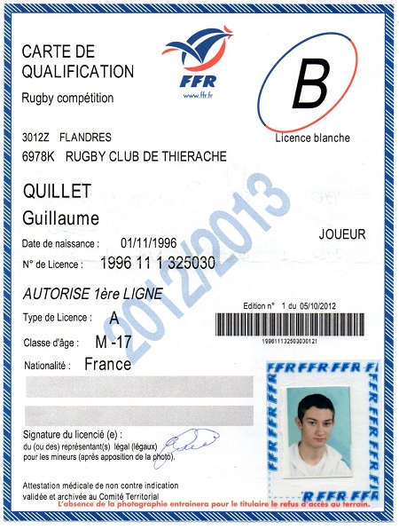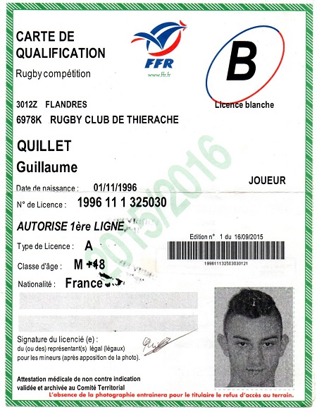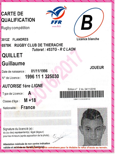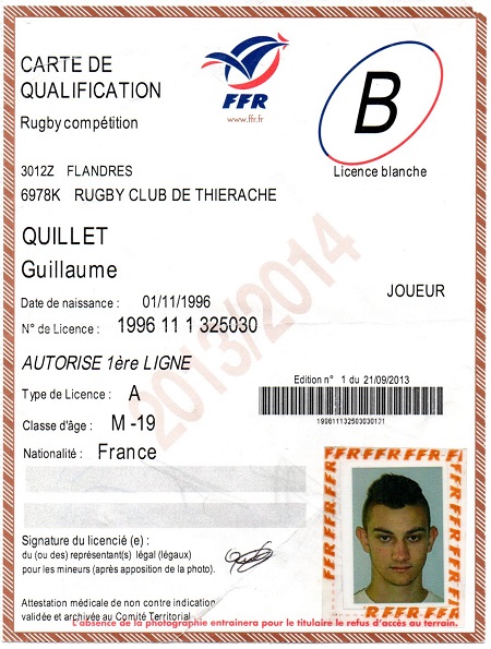 Nom:   Quillet Prénom:   Guillaume Date de naissance:   Vendredi 01 novembre 1996 Lieu de naissance:   Hirson (France) Poste:   Centre, Demi d'ouverture |