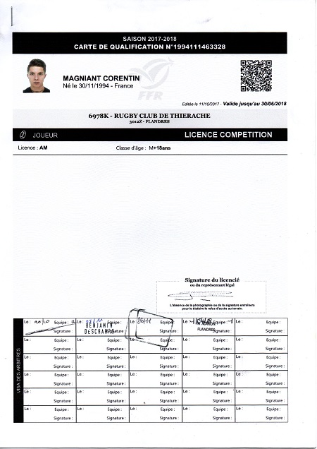 Nom:   Magniant Prénom:   Corentin Date de naissance:   Mercredi 30 novembre 1994 Lieu de naissance:   Laon (France) Poste:   Demi de mêlée |