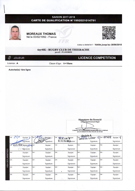 Nom:   Moreaux Prénom:   Thomas Date de naissance:   Lundi 03 février 1992 Lieu de naissance:   Laon (France) Poste:   2eme ligne |