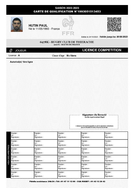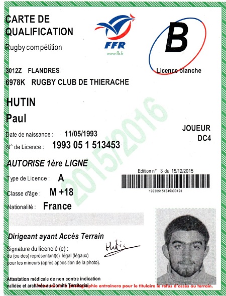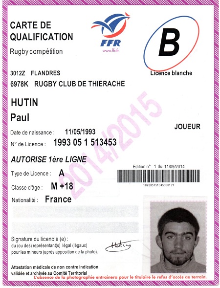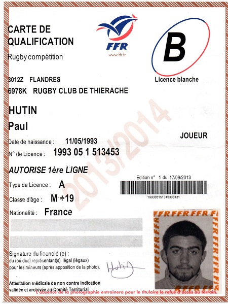 Nom:   Hutin Prénom:   Paul Date de naissance:   Mardi 11 mai 1993 Lieu de naissance:   Laon (France) Poste:   Ailier |
