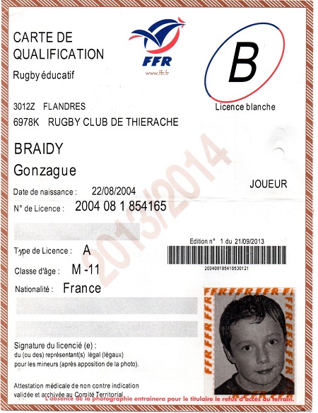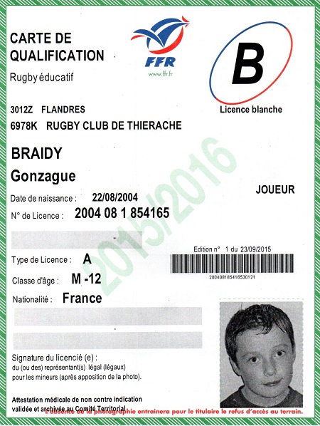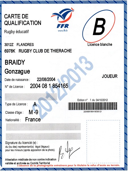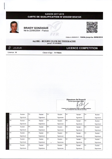 Nom:   Braidy Prénom:   Gonzague Date de naissance:   Dimanche 22 août 2004 Lieu de naissance:   Reims (France) Poste:   3/4 |