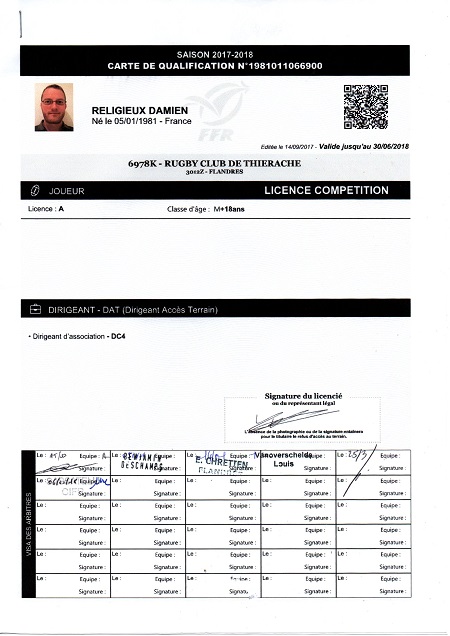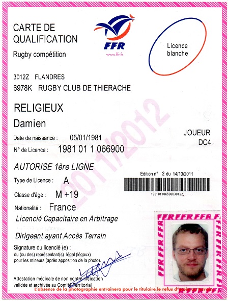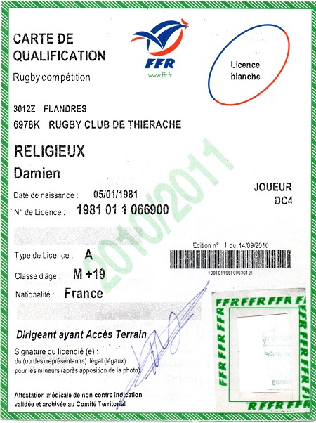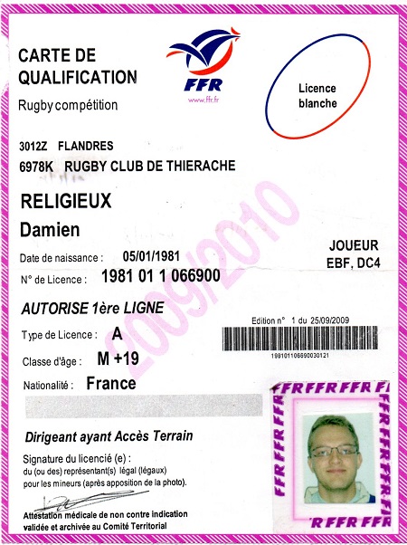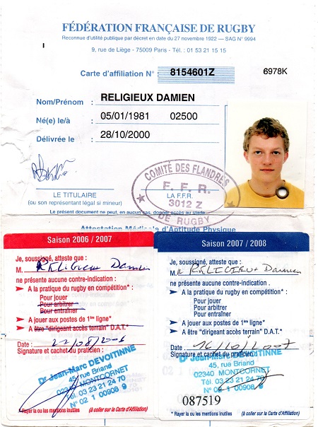 Nom:   Religieux Prénom:   Damien Surnom:   poulet Date de naissance:   Lundi 05 janvier 1981 Lieu de naissance:   Hirson (France) Poste:   Arrière, ailier ou demi de mêlée |