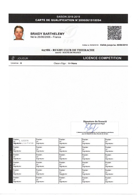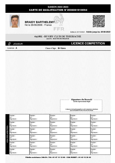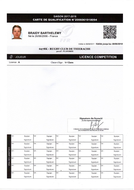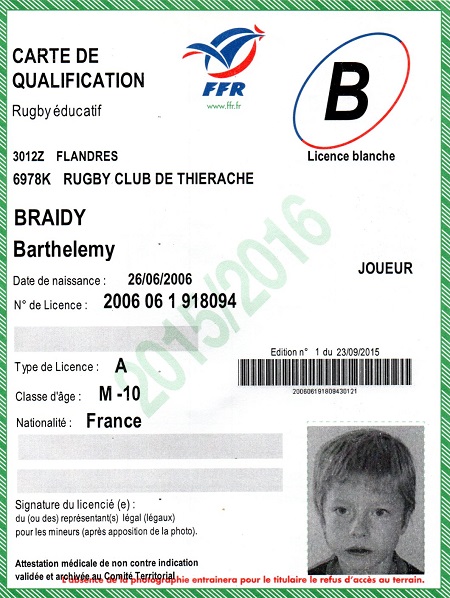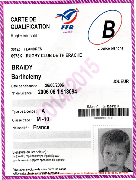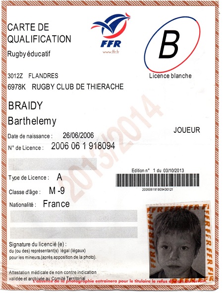 Nom:   Braidy Prénom:   Barthelemy Date de naissance:   Lundi 26 juin 2006 Lieu de naissance:   Reims (France) |