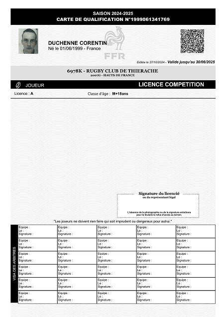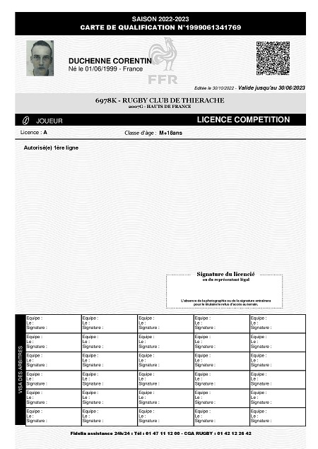 Nom:   Duchenne Prénom:   Corentin Date de naissance:   Mardi 01 juin 1999 Lieu de naissance:   Laon (France) Poste:   Trois-quart |