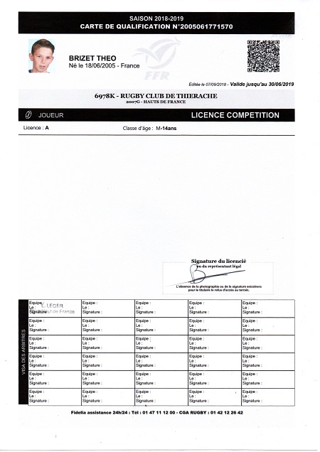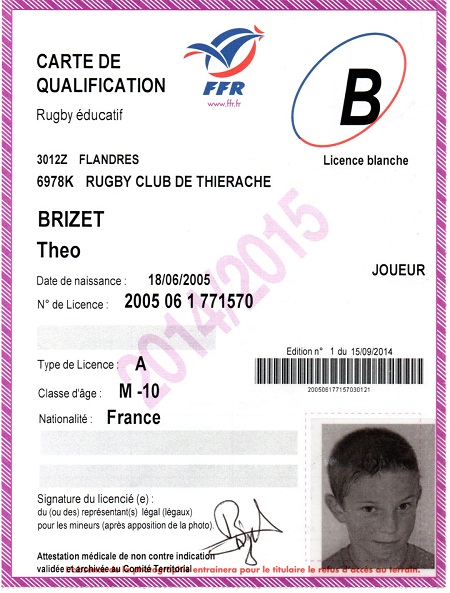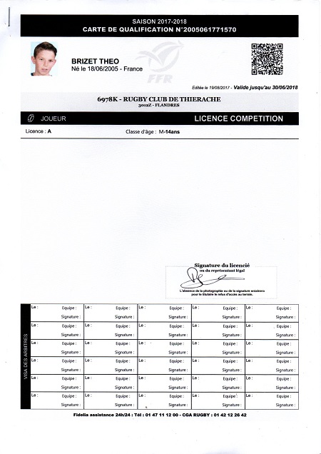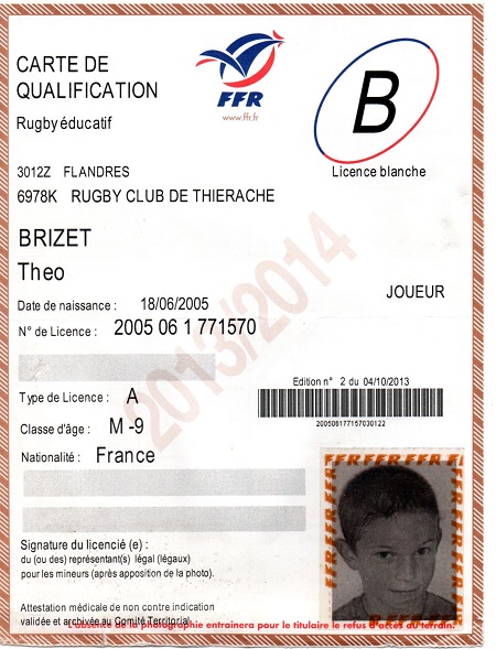 Nom:   Brizet Prénom:   Théo Date de naissance:   Samedi 18 juin 2005 Lieu de naissance:   Laon (France) |