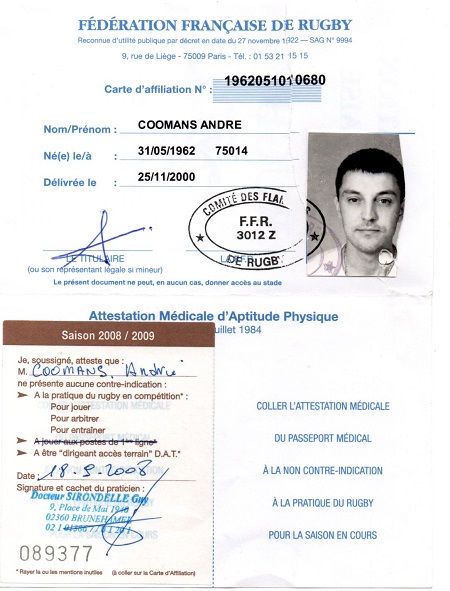 Nom:   Coomans Prénom:   André Date de naissance:   Jeudi 31 mai 1962 Poste:   3eme ligne |