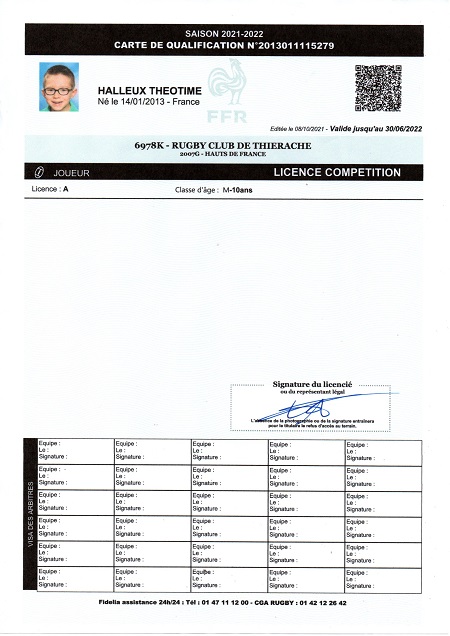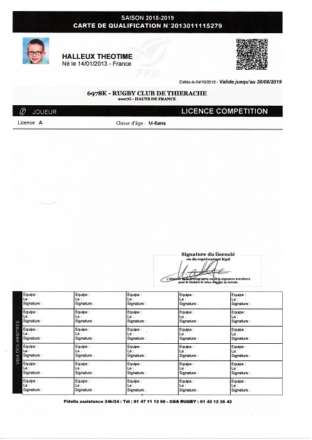 Lien de parenté avec une autre personne licenciée au club: