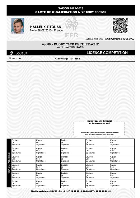 Lien de parenté avec une autre personne licenciée au club: