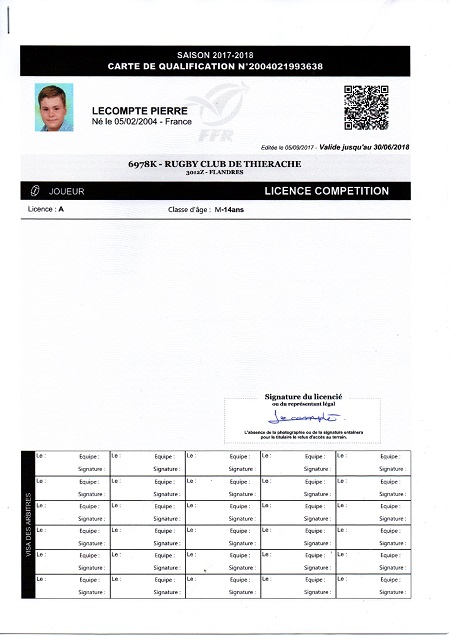 Nom:   Lecompte Prénom:   Pierre Date de naissance:   Jeudi 05 février 2004 Lieu de naissance:   Reims (France) |