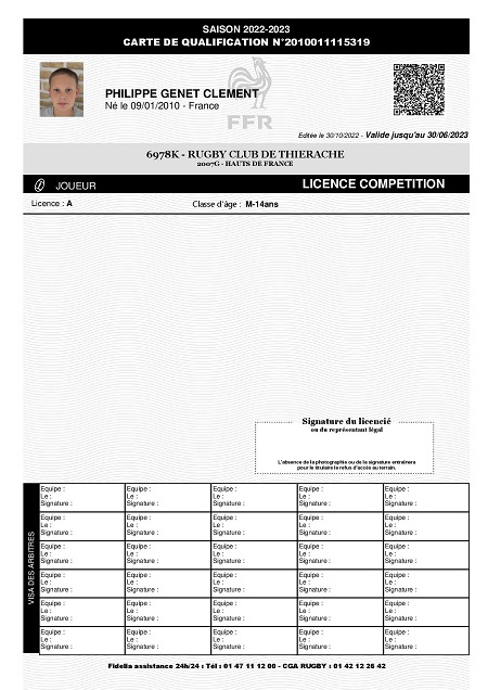 Lien de parenté avec une autre personne licenciée au club: