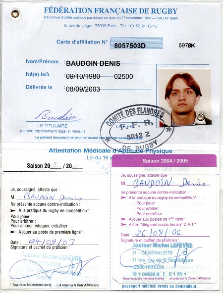 Nom:   Baudoin Prénom:   Denis Date de naissance:   Jeudi 09 octobre 1980 Lieu de naissance:   Hirson (France) Poste:   Demi d'ouverture |