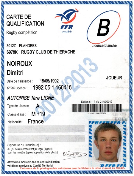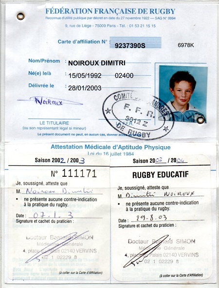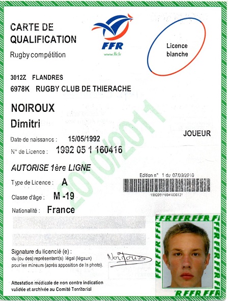 Nom:   Noiroux Prénom:   Dimitri Date de naissance:   Vendredi 15 mai 1992 Lieu de naissance:   Chateau-Thierry (France) |