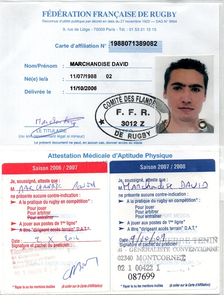 Nom:   Marchandise Prénom:   David Date de naissance:   Lundi 11 juillet 1988 Lieu de naissance:   Hirson (France) |