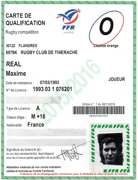Nom:   Real Prénom:   Maxime Date de naissance:   Dimanche 07 mars 1993 |