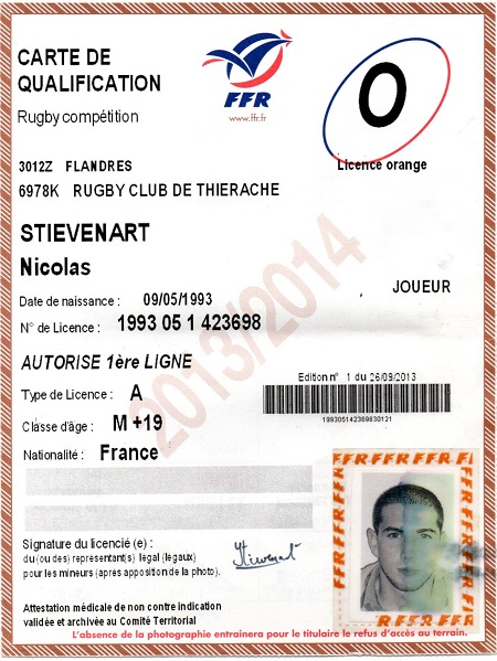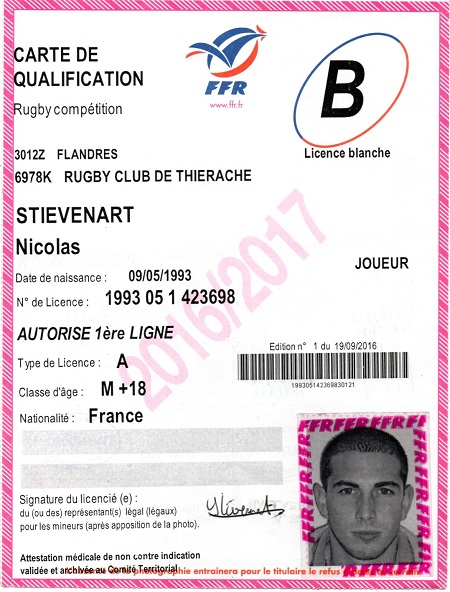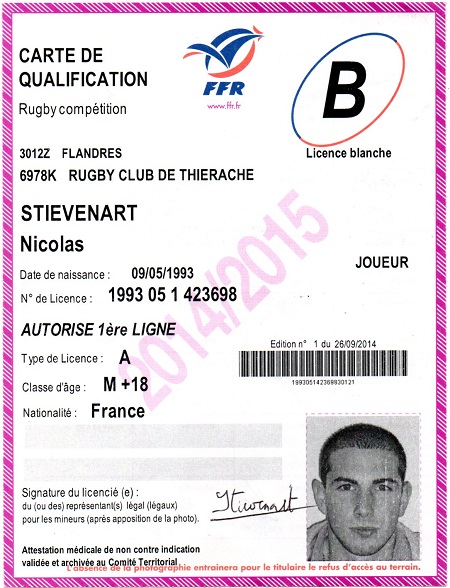 Nom:   Stievenart Prénom:   Nicolas Date de naissance:   Dimanche 09 mai 1993 |