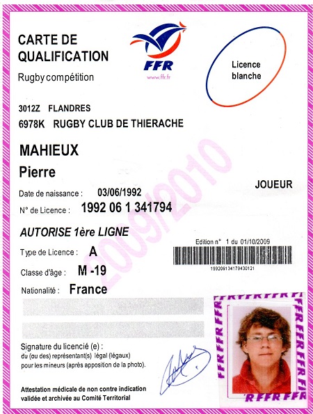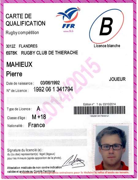 Nom:   Mahieux Prénom:   Pierre Date de naissance:   Mercredi 03 juin 1992 |