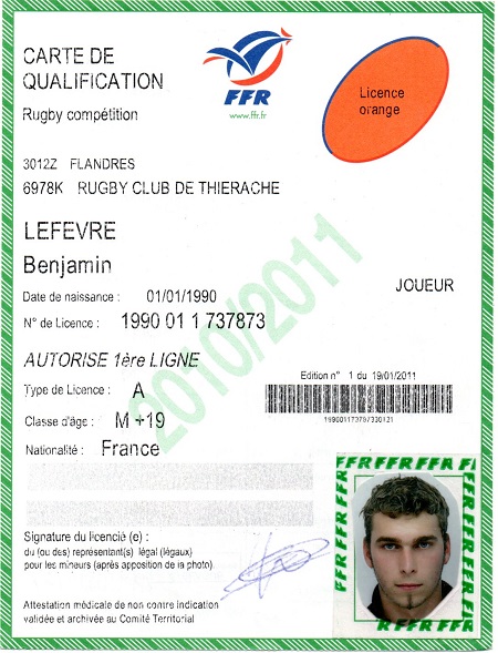 Nom:   Lefevre Prénom:   Benjamin Date de naissance:   Lundi 01 janvier 1990 |