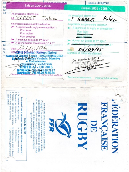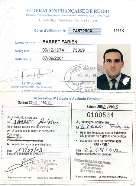 Nom:   Barret Prénom:   Fabien Date de naissance:   Lundi 09 décembre 1974 Poste:   3eme ligne |
