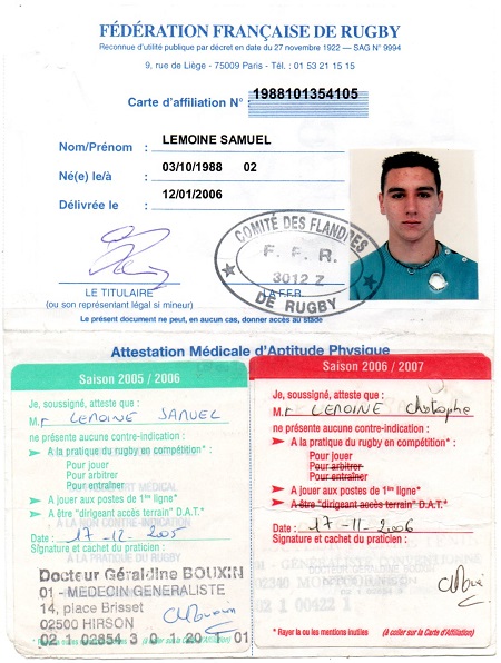 Nom:   Lemoine Prénom:   Samuel Date de naissance:   Lundi 03 octobre 1988 Lieu de naissance:   Laon (France) Poste:   Centre |