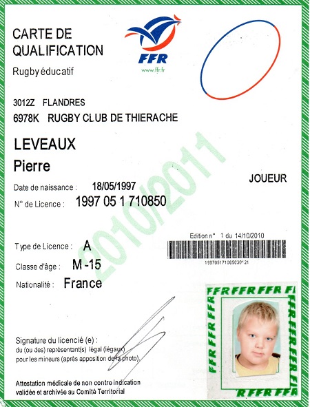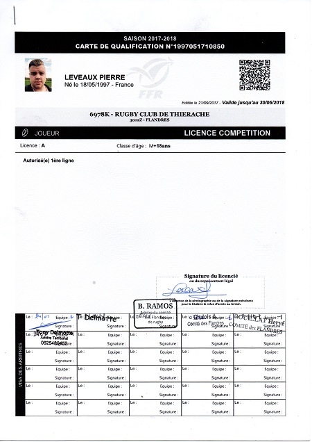 Nom:   Leveaux Prénom:   Pierre Date de naissance:   Dimanche 18 mai 1997 |