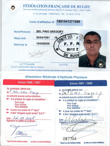 Nom:   Del Pino Prénom:   Gregory Date de naissance:   Lundi 20 avril 1981 Lieu de naissance:   Brive (France) |