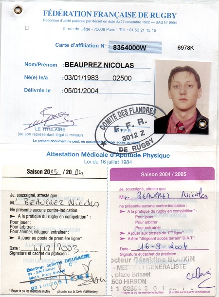 Nom:   Beauprez Prénom:   Nicolas Date de naissance:   Lundi 03 janvier 1983 |
