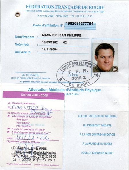 Nom:   Magnier Prénom:   Jean-Philippe Date de naissance:   Vendredi 10 septembre 1982 |