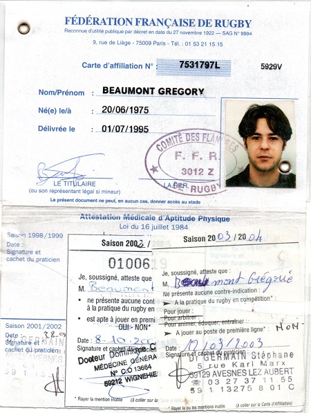 Nom:   Beaumont Prénom:   Gregory Date de naissance:   Vendredi 20 juin 1975 |