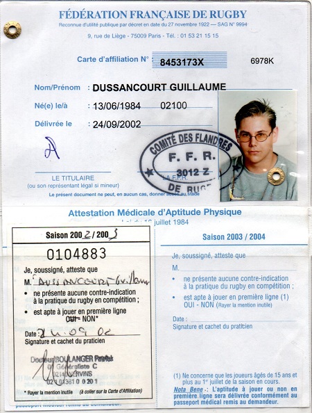 Nom:   Dussancourt Prénom:   Guillaume Date de naissance:   Mercredi 13 juin 1984 |