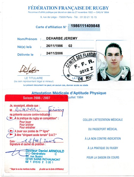 Nom:   Deharbe Prénom:   Jérémy Date de naissance:   Mercredi 26 novembre 1986 Lieu de naissance:   Laon (France) |