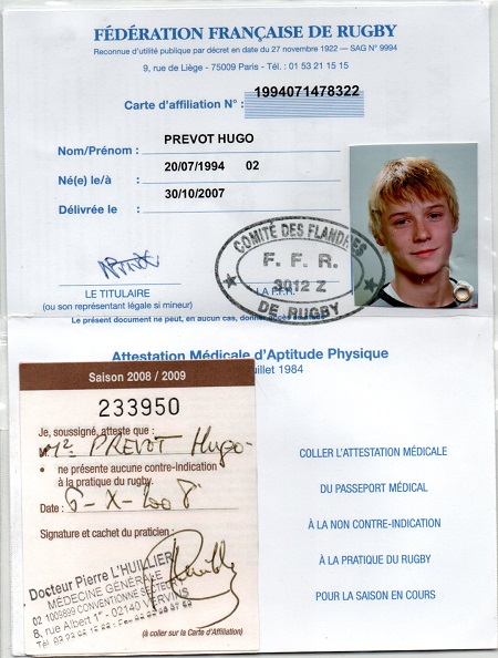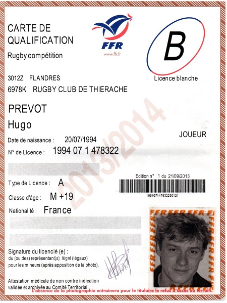 Nom:   Prevot Prénom:   Hugo Date de naissance:   Mercredi 20 juillet 1994 |