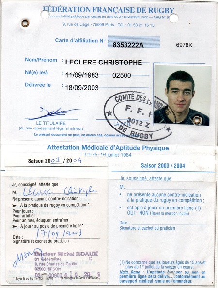 Nom:   Leclere Prénom:   Christophe Date de naissance:   Dimanche 11 septembre 1983 |