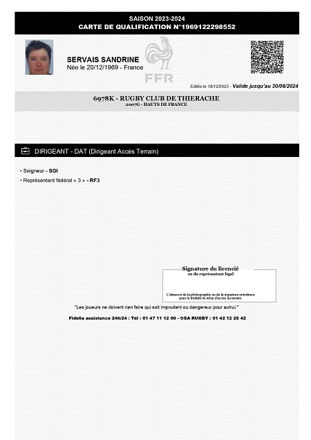 Nom:   Servais Prénom:   Sandrine Date de naissance:   Samedi 20 décembre 1969 Lieu de naissance:   Maubeuge (France) Poste:   Arbitre, Représentant fédéral |