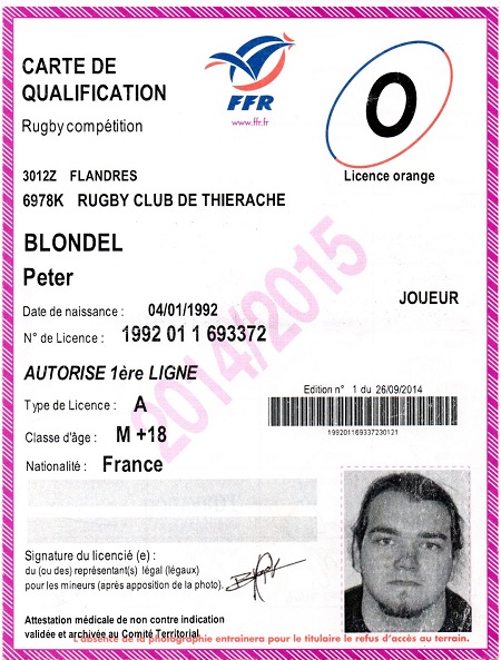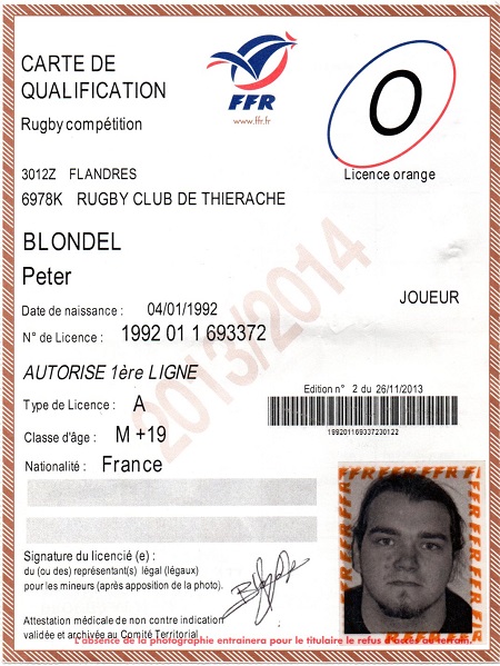 Nom:   Blondel Prénom:   Peter Date de naissance:   Samedi 04 janvier 1992 |