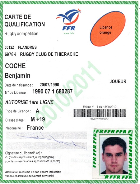 Nom:   Coche Prénom:   Benjamin Date de naissance:   Vendredi 20 juillet 1990 |