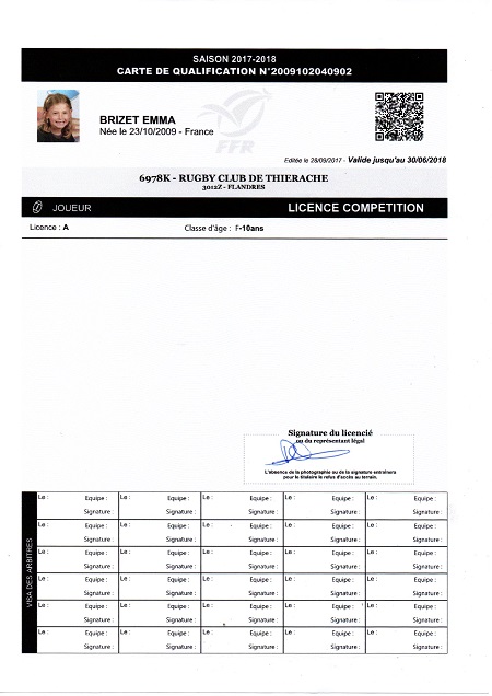 Lien de parenté avec une autre personne licenciée au club: