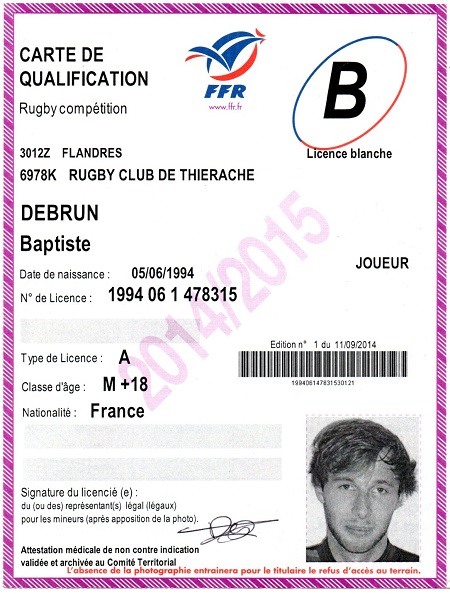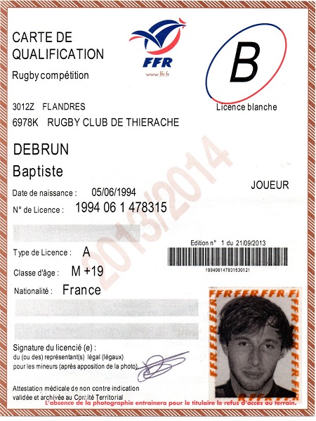 Nom:   Debrun Prénom:   Baptiste Date de naissance:   Dimanche 05 juin 1994 |