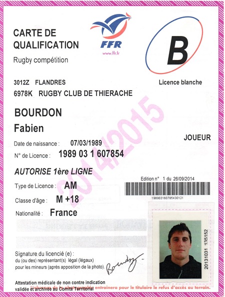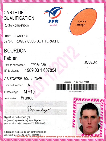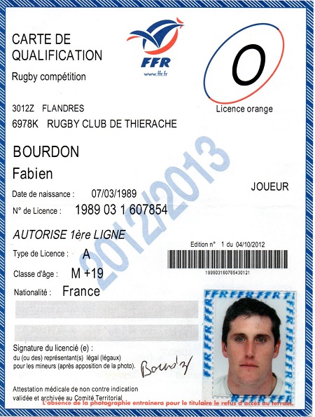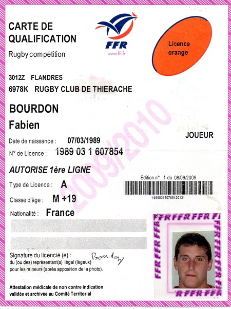Nom:   Bourdon Prénom:   Fabien Surnom:   Le caribou Date de naissance:   Mardi 07 mars 1989 Date de déces:   Lundi 03 février 2025 Poste:   2eme ligne |